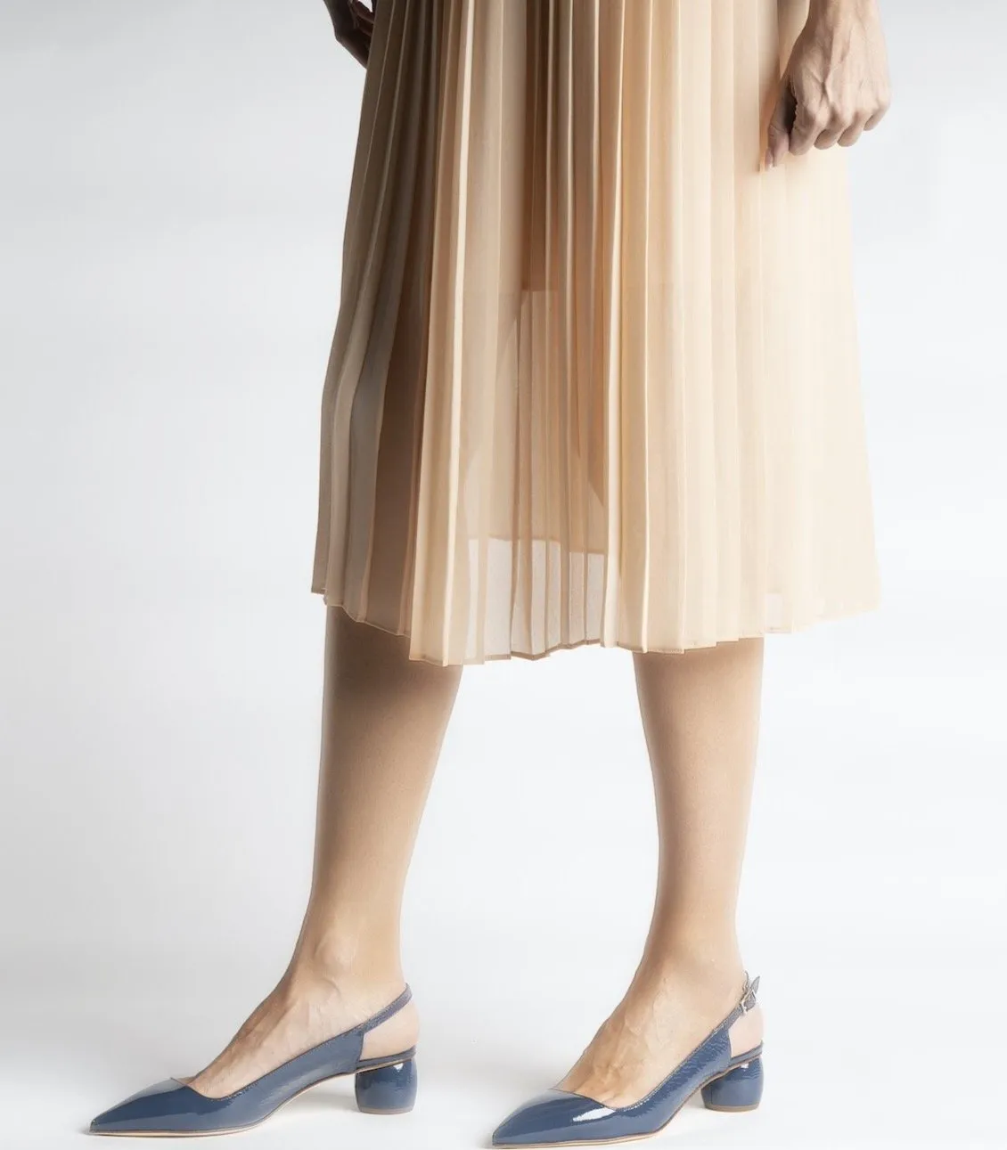 These navy Fabio Rusconi slingback shoes are made in Italy from leather and feature a naplak patent finish, pointed toes, slingback straps with adjustable buckle fastening and open toe and spherical heel.