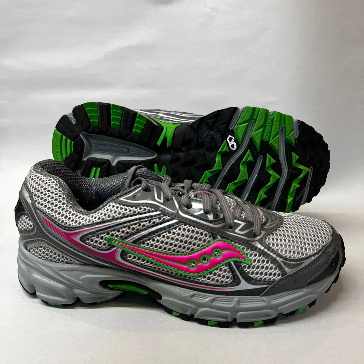 Conquer a range of terrain in the Saucony Cohesion TR7 running shoe, aimed at the neutral runner and equipped with a trail outsole. With an overlay configuration for lightweight lockdown and a heel grid system to protect on heel strike, this breathable mesh-and-synthetic women's running shoe is geared to help you get the most from every outing. The decoupled heel and flexible forefoot deliver a smooth transition through the gait cycle; an injection-molded EVA midsole cushions every landing. The Saucony Cohesion TR7 athletic shoe is finished with a rugged XT-600™ rubber outsole that has a triangular lug pattern to meet the challenges of trail running.